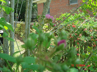 Isn't it amazing how flowers find their way into great works of literature?  Well, I have two honeysuckle vines, which are crawling all over my picket fence. They love their little spot which gets sun virtually all day.
